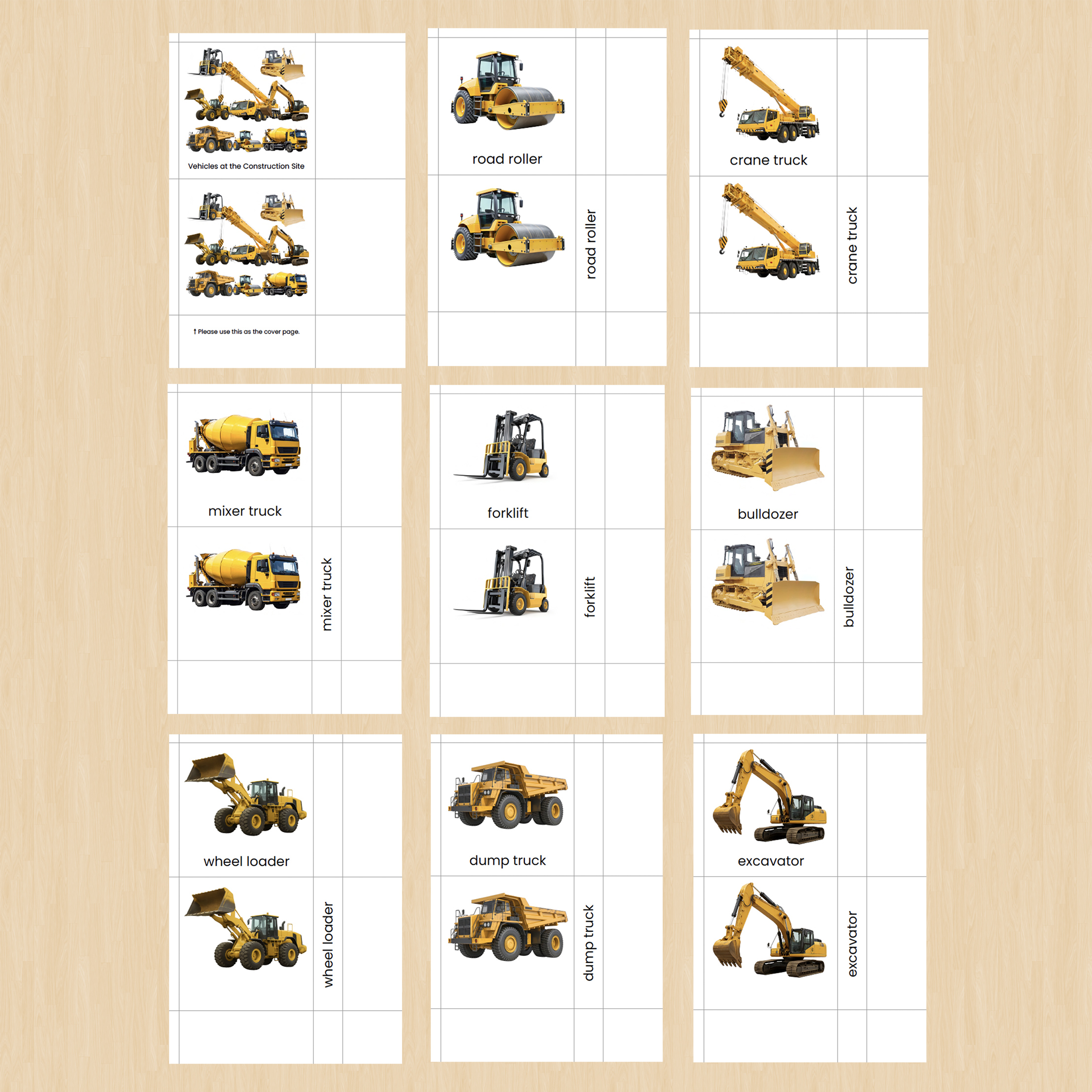 工事現場ではたらく車(重機)の絵カードを作りました。