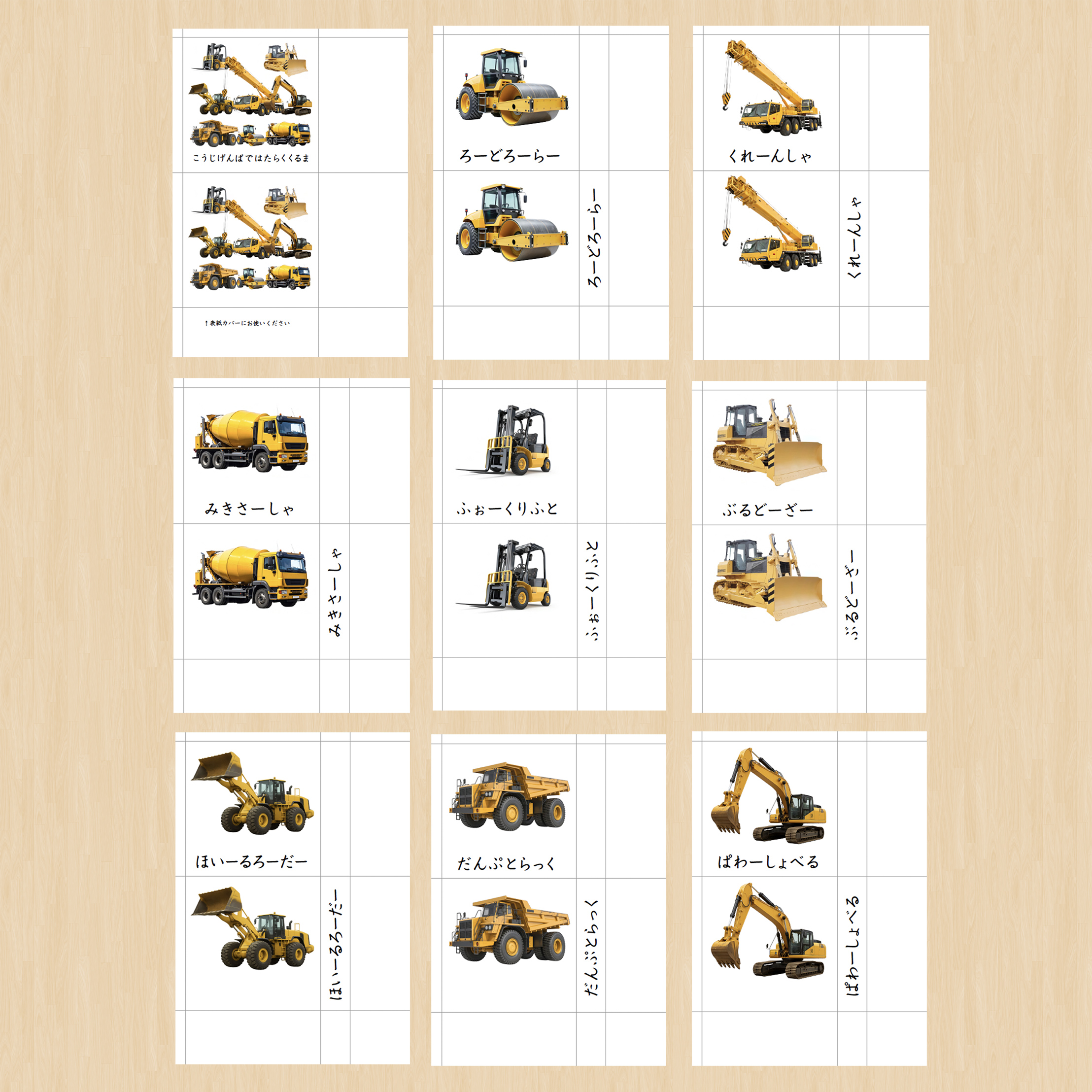 こうじげんばではたらくくるまの絵カードを作成しました。