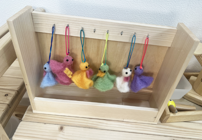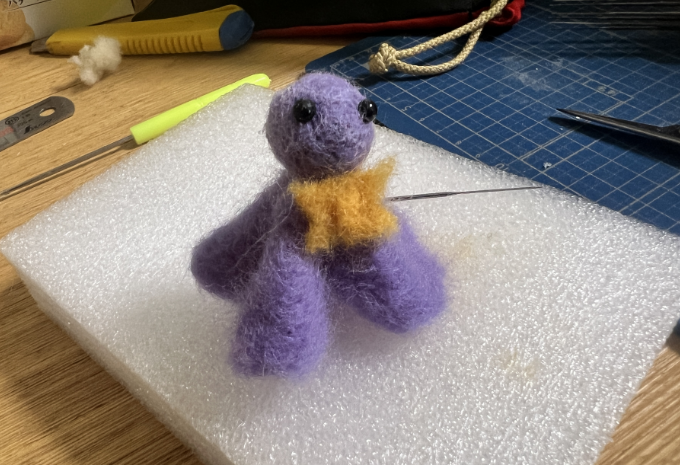 以前少しだけハマって、大量に購入していた人形用の羊毛フェルトが自宅に余っていたので、教室が夏休みの時に使ってみることにしました。