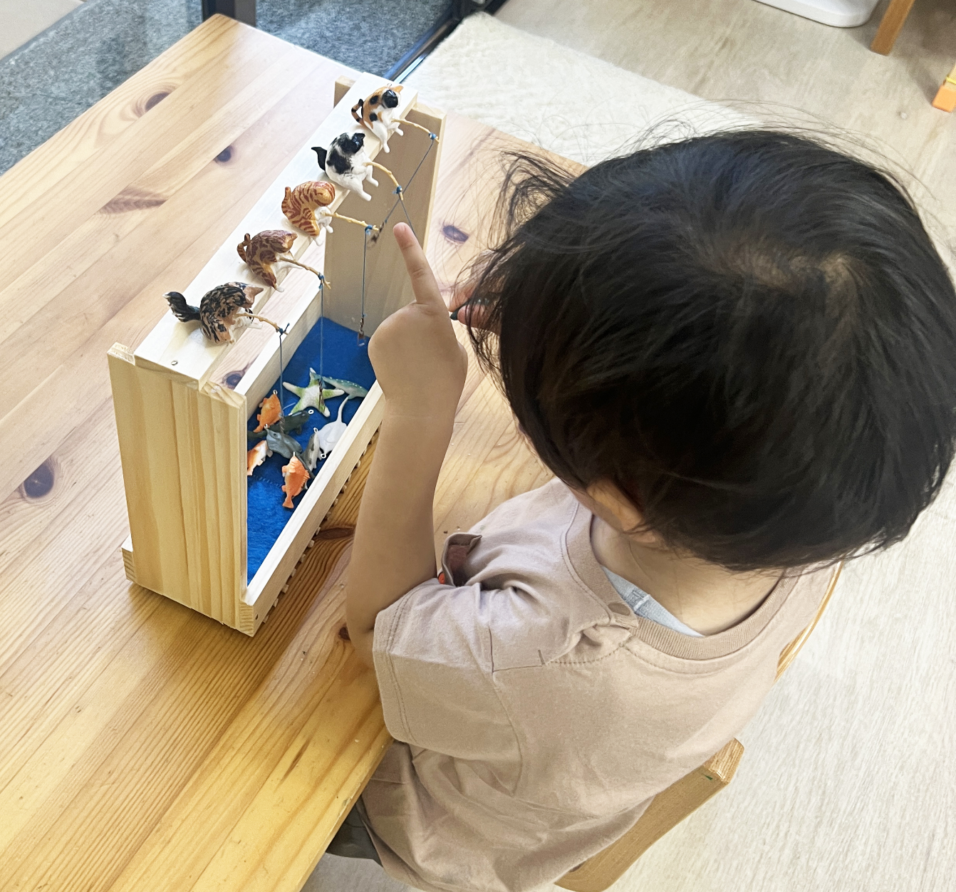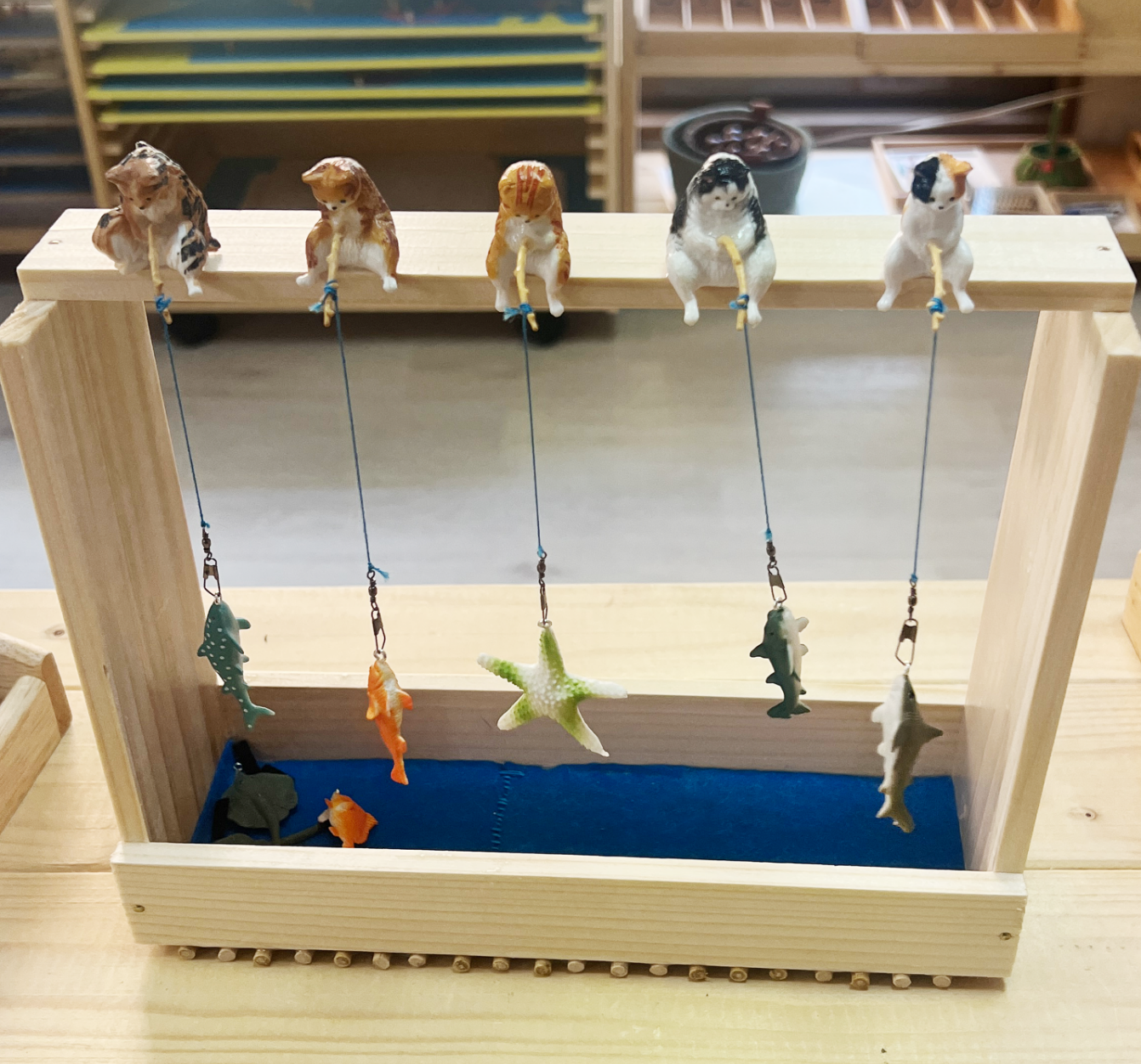 床には青いフェルトを敷いて、海をイメージ。