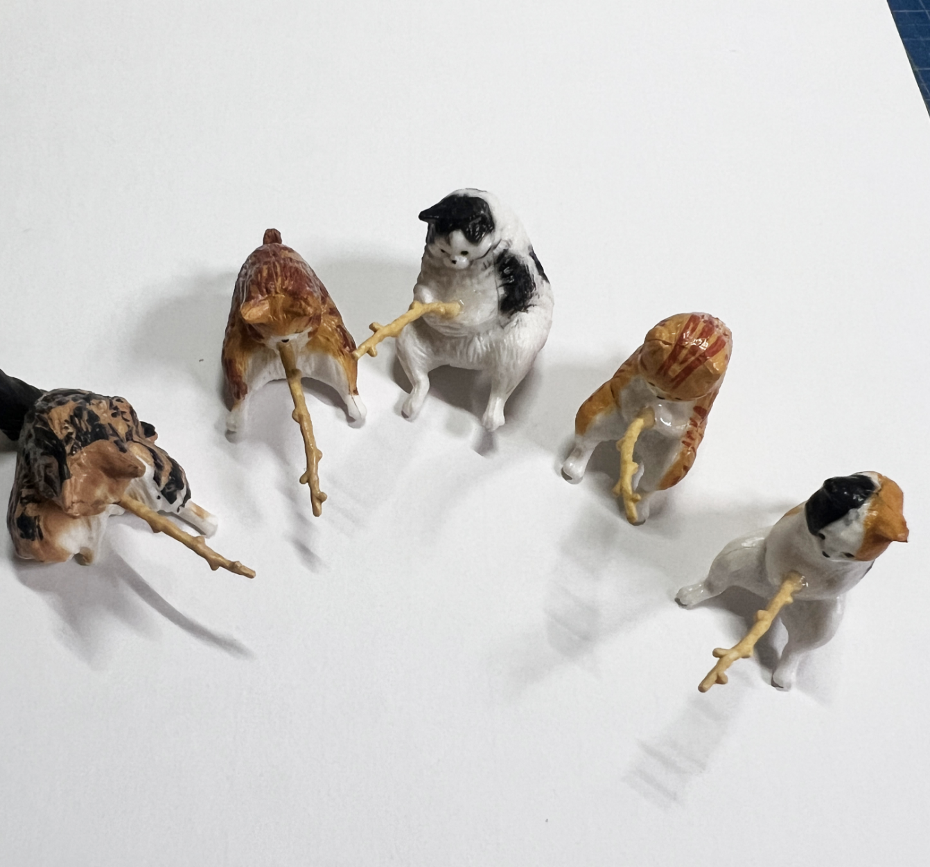 夏休み工作キットを利用して土台を作り、猫たちをボンドで設置しました。
